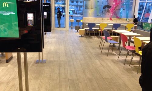 - Pulizie ristorante MC DONALD'S lavori di sgrosso totale del locale, lavaggio pareti e porte,antigraffitaggio;